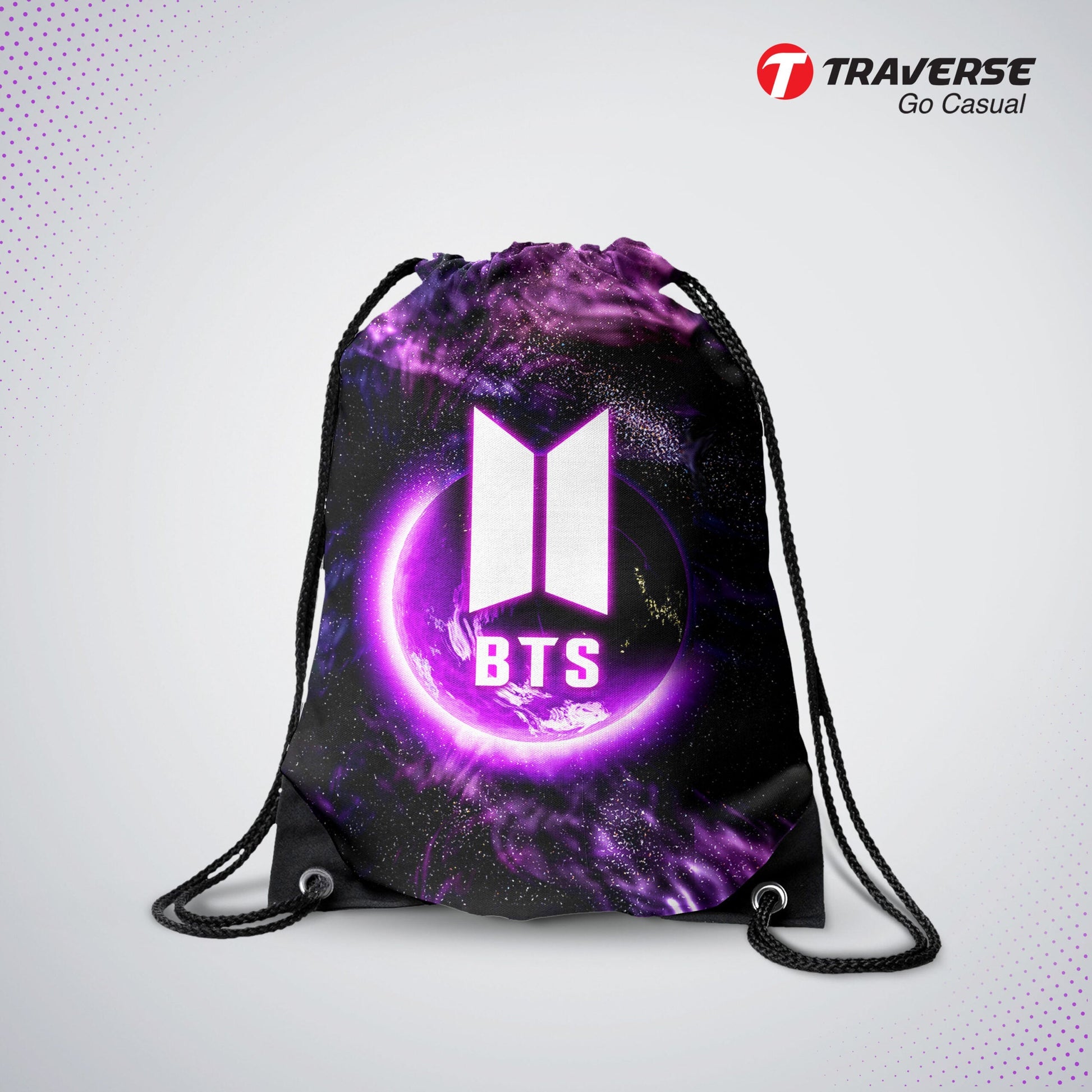 BTS Drawstring Bag- Best KPOP design digitally printed on strong fabric by Traverse