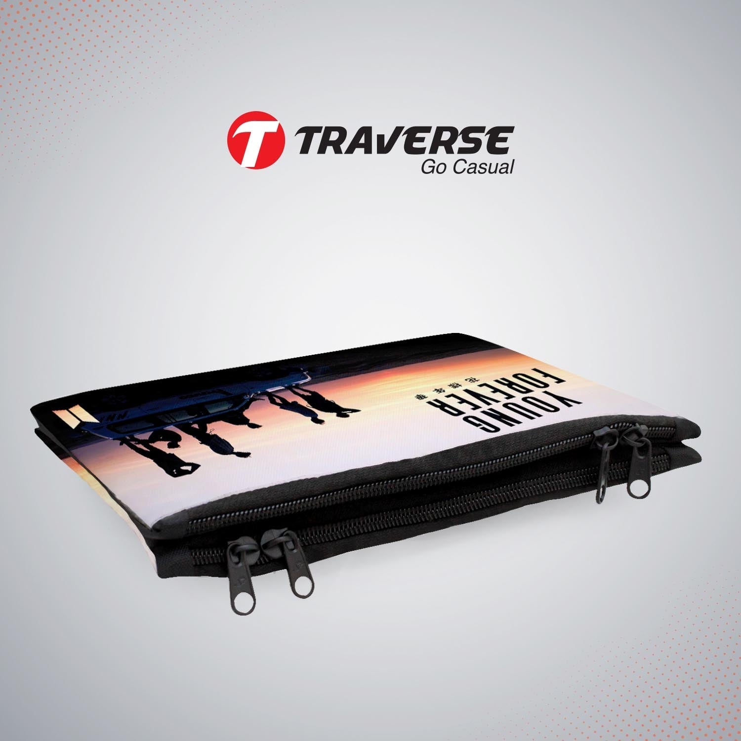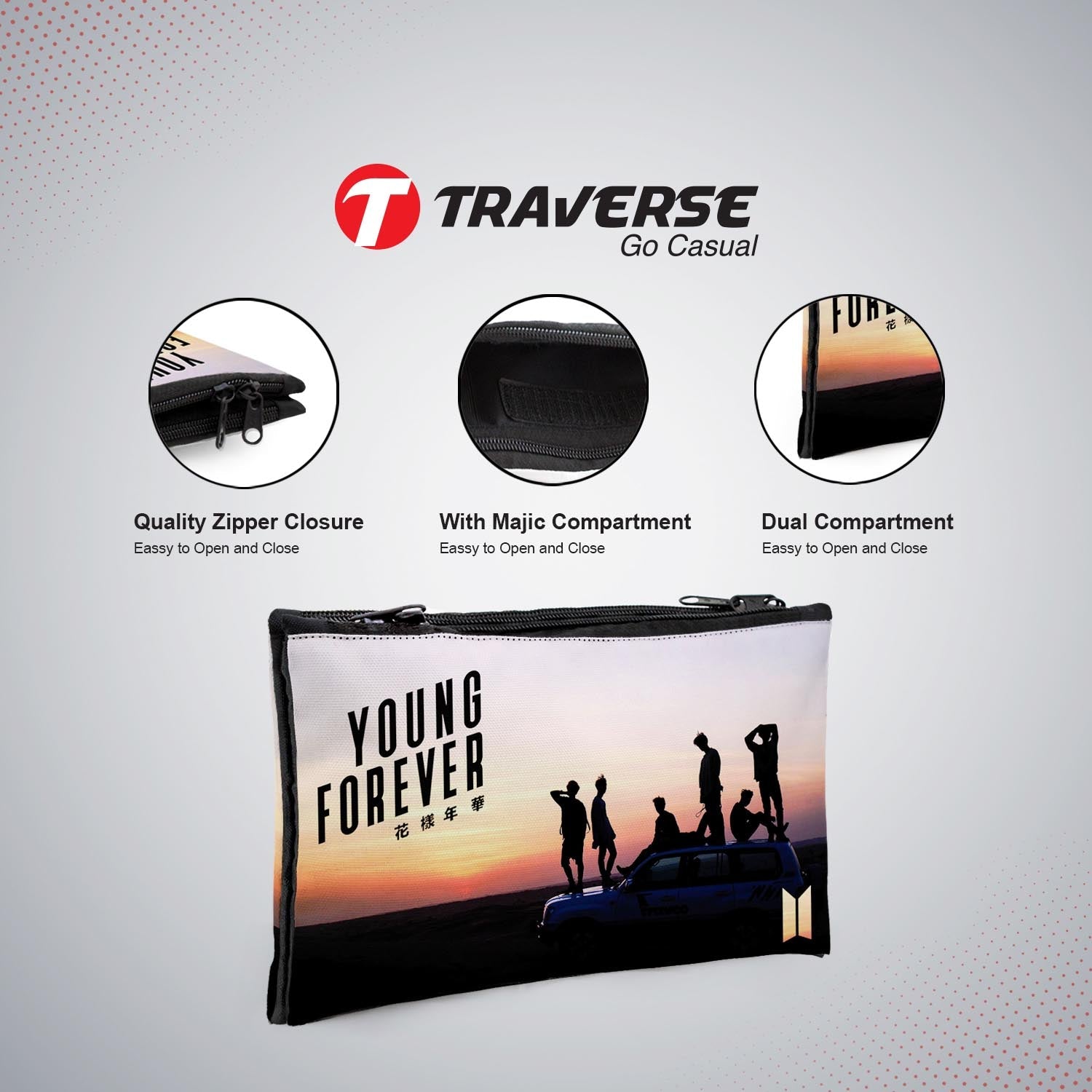 Dual compartment BTS pencil pouch. Printed on Fabric with both sides covered