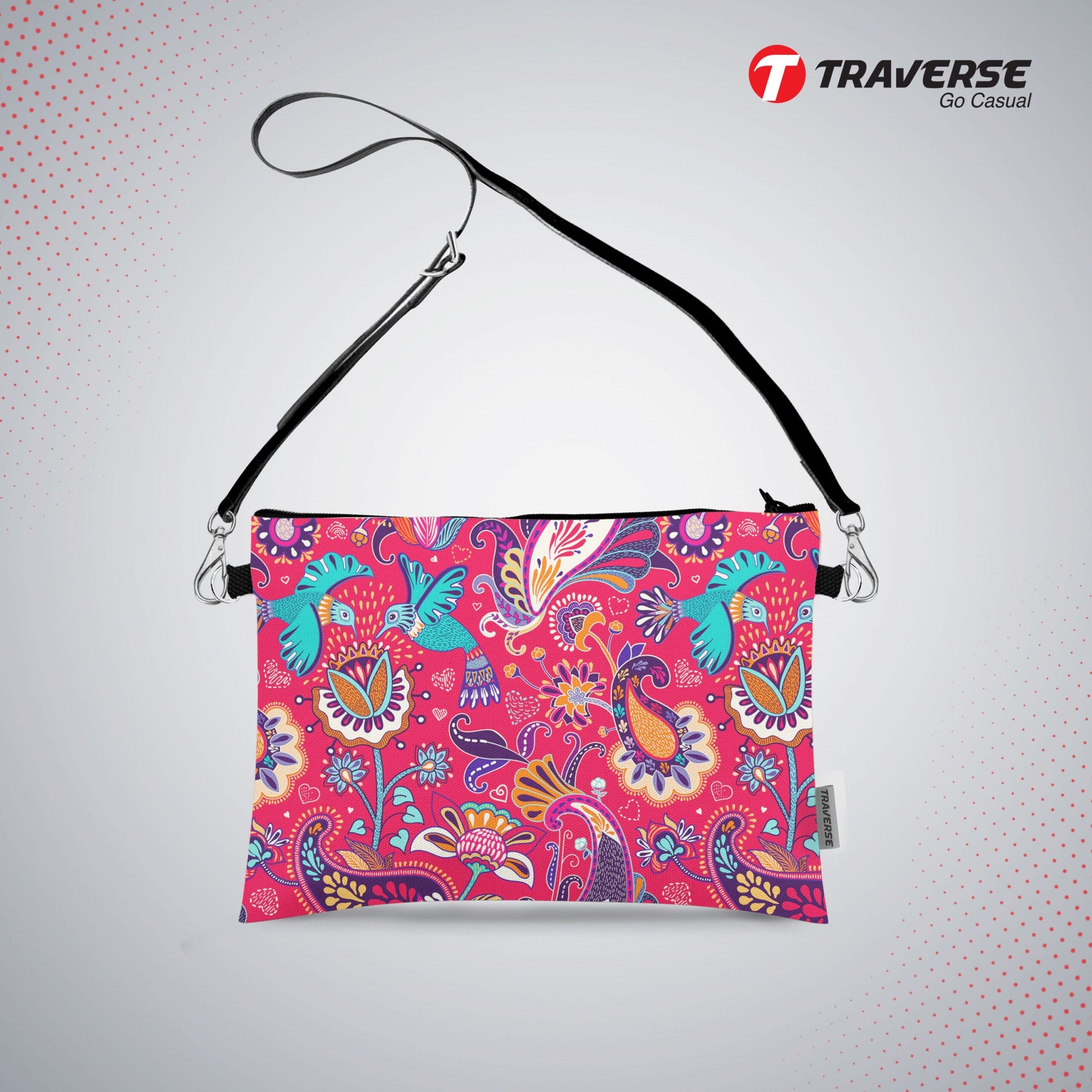 Girl Floral Pouch - ( Digitally printed on Cloth +) With Shoulder Strap.