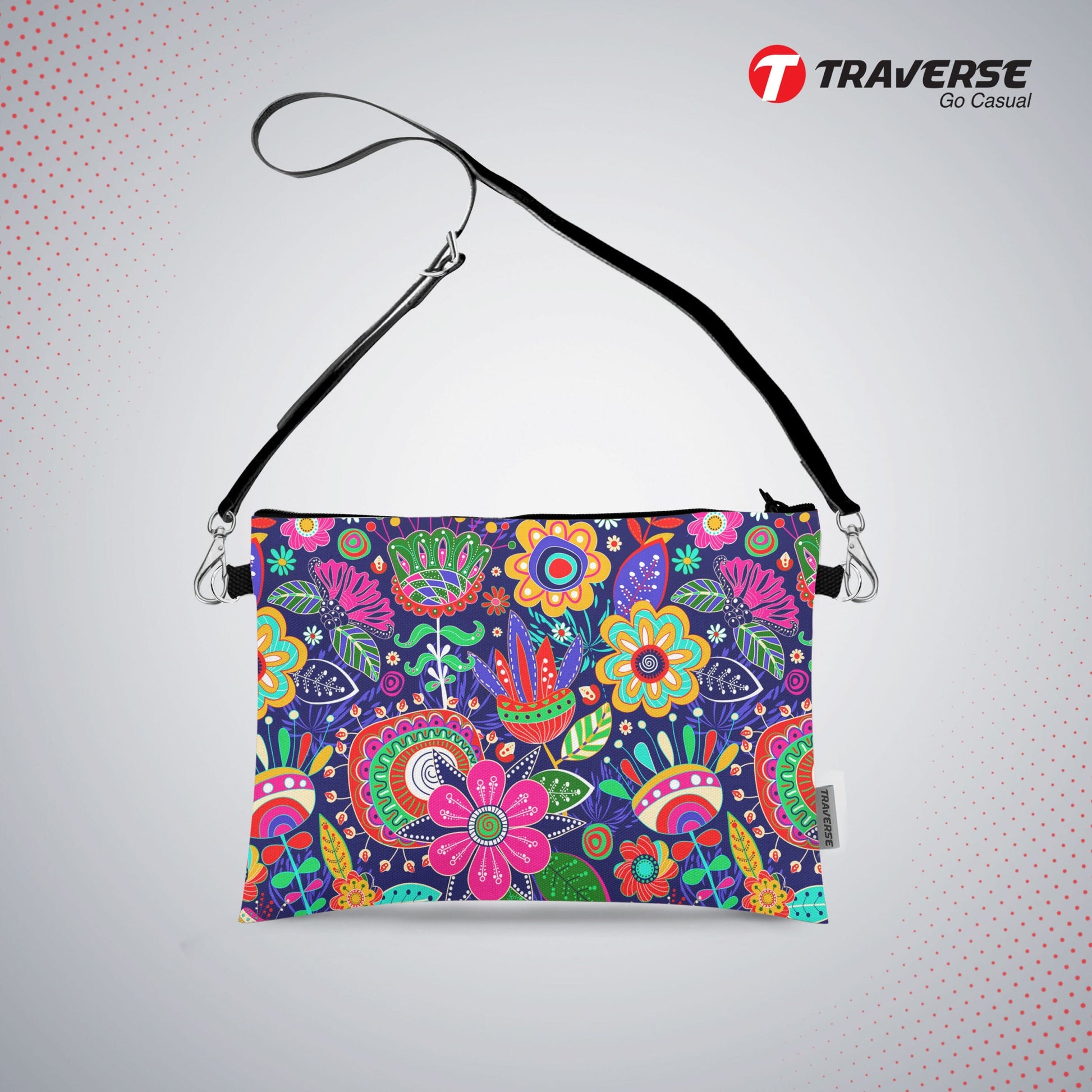 Girl Floral Pouch - (Digitally printed on Cloth) With Shoulder Strap.