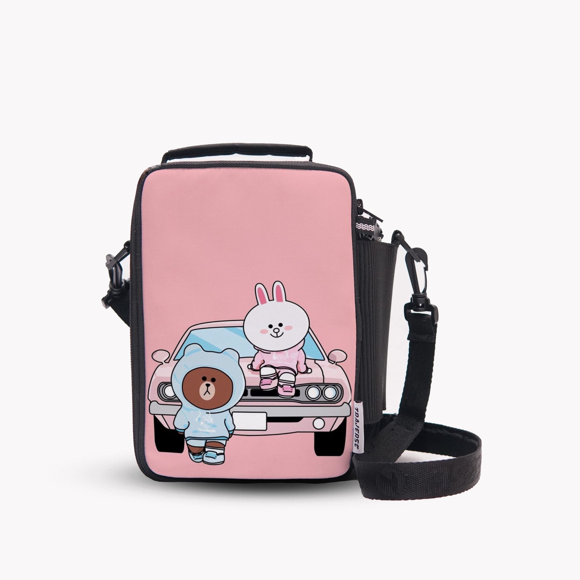 Traverse Brown Coni Line Lunch Bag with option to carry water bottle- Digitally printed and manufactured by Traverse