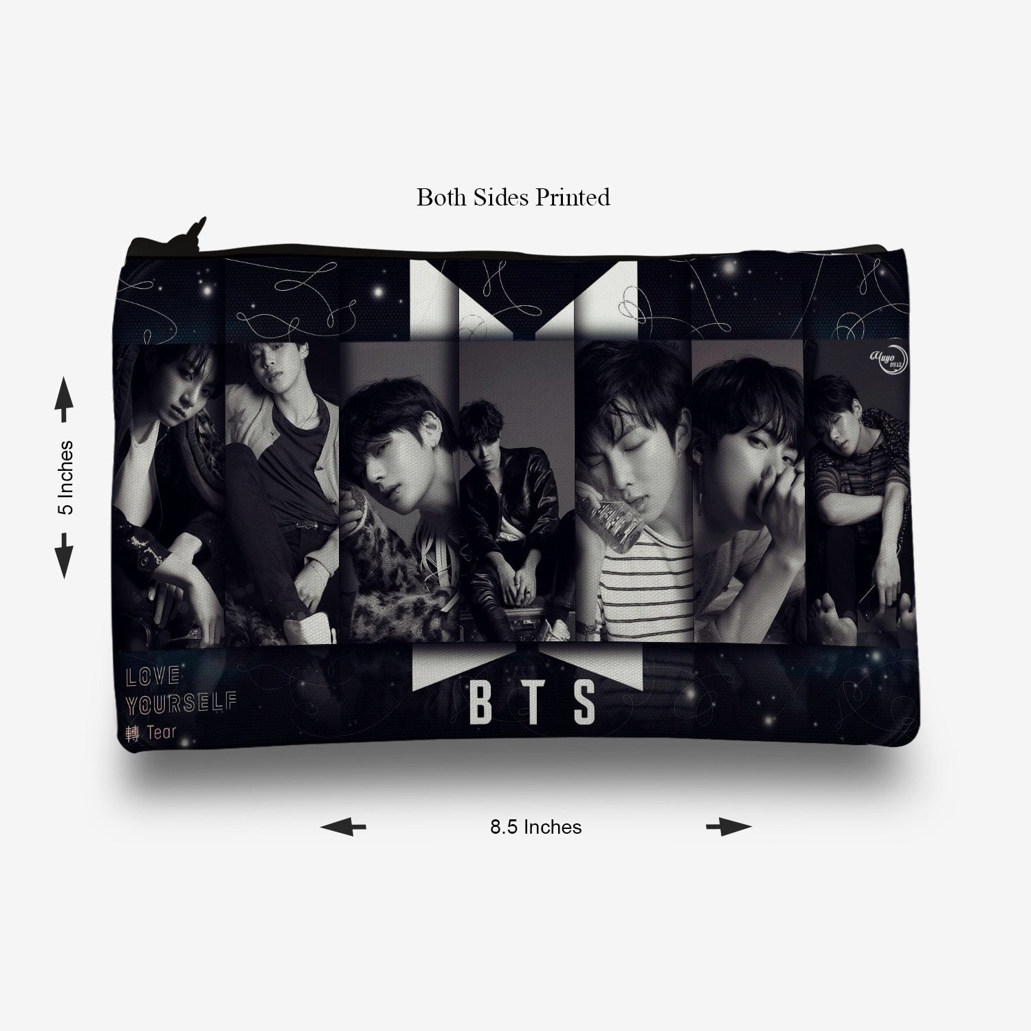 Traverse BTS (KPOP) pencil pouch for boys & girls. Digitally printed on Fabric with both sides printed