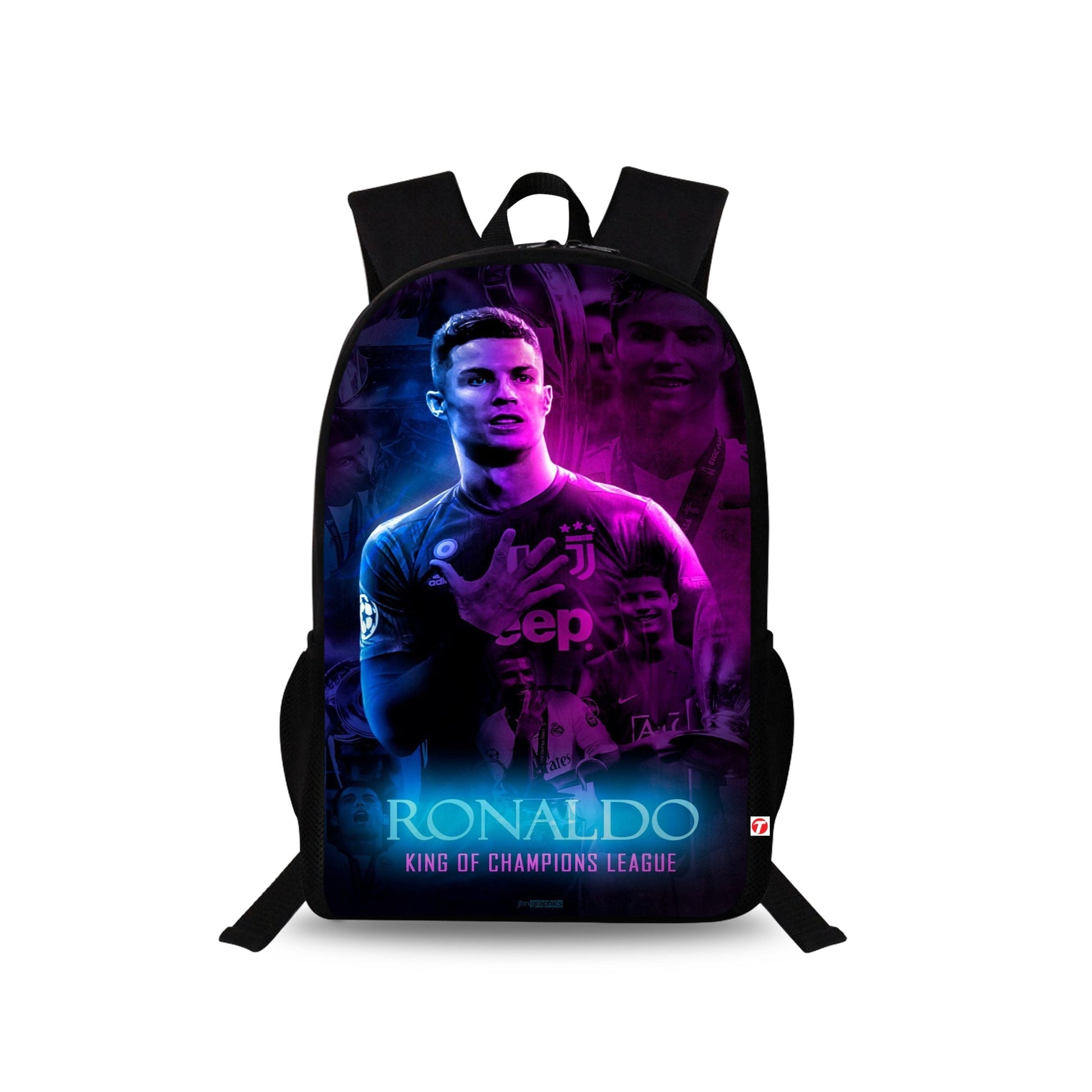 Traverse Ronaldo Bags For Boys & Girls. Digitally printed on Fabric with latest technology. Dual Compartment large backpack